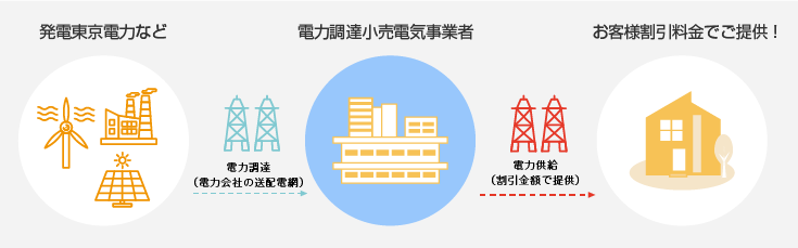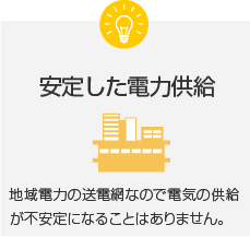 大きな電力マーケットから電力を供給することにより、安定した電力供給と低価格を実現しています。